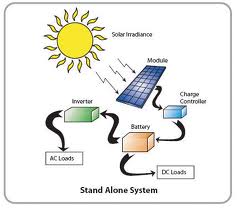 The Solar photovoltaic system works on the principle of conversion of sunlight into electrical energy. The Solar Panel array facing the sun captures the sun energy, converts it into electricity and stored in batteries. With the help of Electronics, the loads operate as per the requirement of the end user.